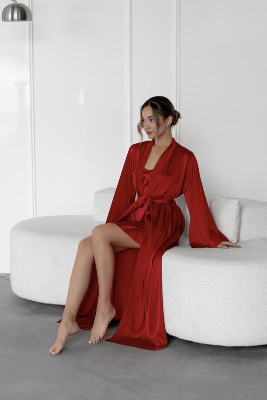 Набор длинный шелковый халат и рубашка, халатик из шелка длинный с ночной рубашкой, красив...
