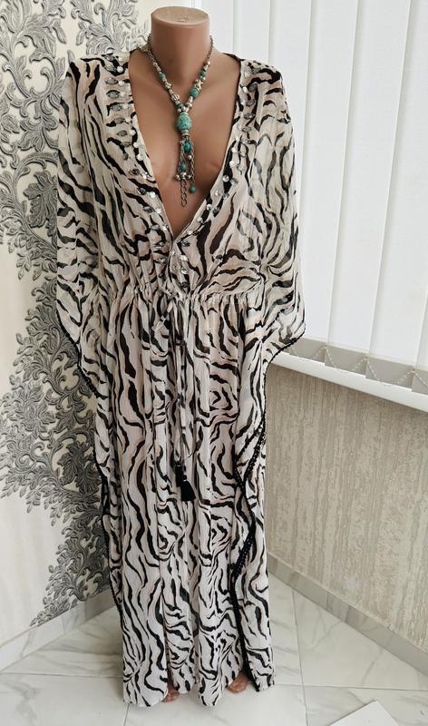 Шикарный пляжный халат лео длинный в пол стразы лего тигр трендовый принт невероятный