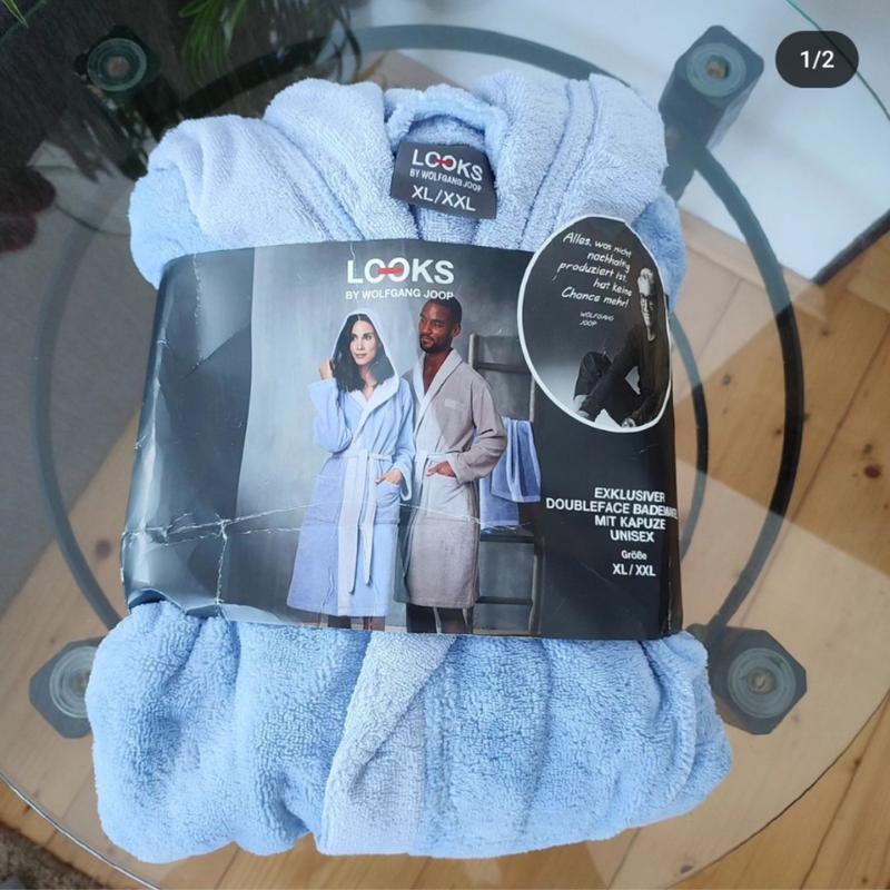 Халат LOOKS by Wolfgang Joop Doubletouch Duo, унисекс♥️ 💙Размер Хс/С,М/Л, Хл/Ххл 💰Цена 1200 грн Характеристики: -Прост в уходе -Приятный и мягкий -Высококачественная вышивка логотипа - Мягкая микрофибра снаружи и абсорбирующая трикотажная хлопковая махра изнутри 📏50% хлопок, 50% полиэстер