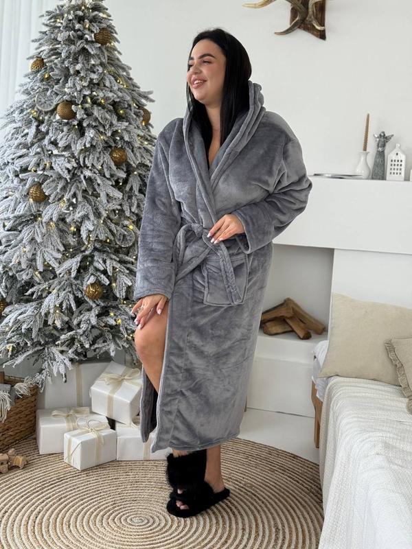 Теплый халат плюс сайз серый халат на зиму 2хл 3хл 4хл подарок для нее