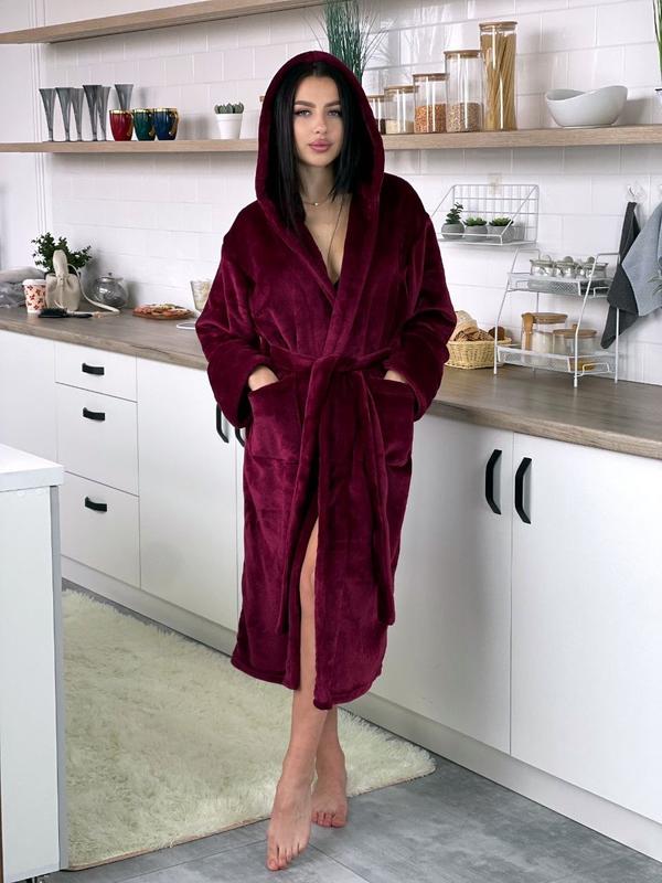 Женский халат выполнен из полированной махры. Халат удобный, очень мягкий на ощупь, не вызывает раздражения, не портится при стирке и легко гладится. Халат имеет двойной капюшон, на запах, имеет два кармашка, длинный рукав, в комплекте пояс. Рукав имеет двойной манжет, за счет этого можно регулировать длину. Ткань: полированная махра welsoft Размеры: 42/46, 48/52, 54/58, 60/64 Цвета: голубой, бордо, джинс Замеры на последнем фото!