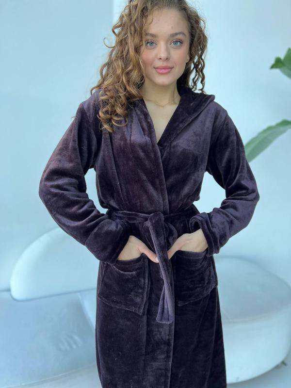 Халатик с кармашками, поясом и капюшоном