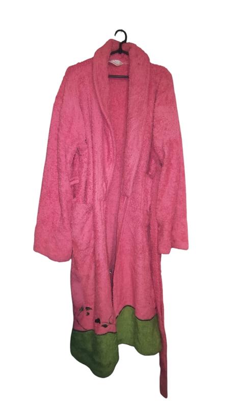 идеальный, новый халат с поясом цвет кораллово розовый плечи 57 пог 52 поб 56 длина 115 рукав от горла 81