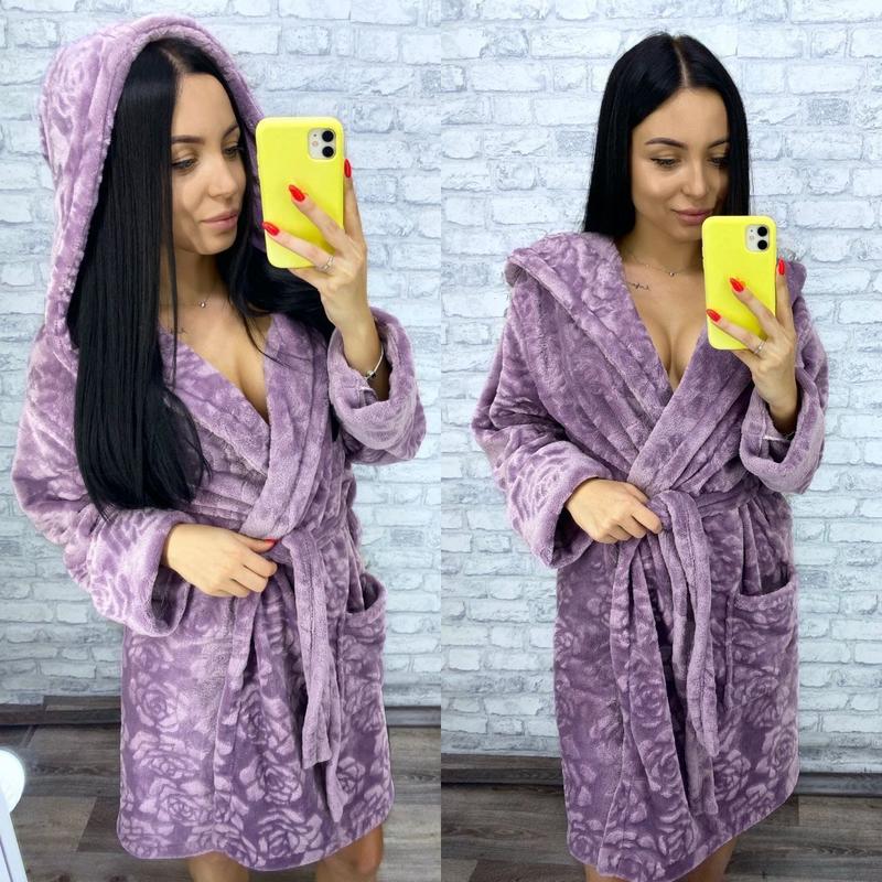 М'який затишний халатик З капюшоном Розмір універсал 42-46 за рахунок запаху, довгі підходять до 48