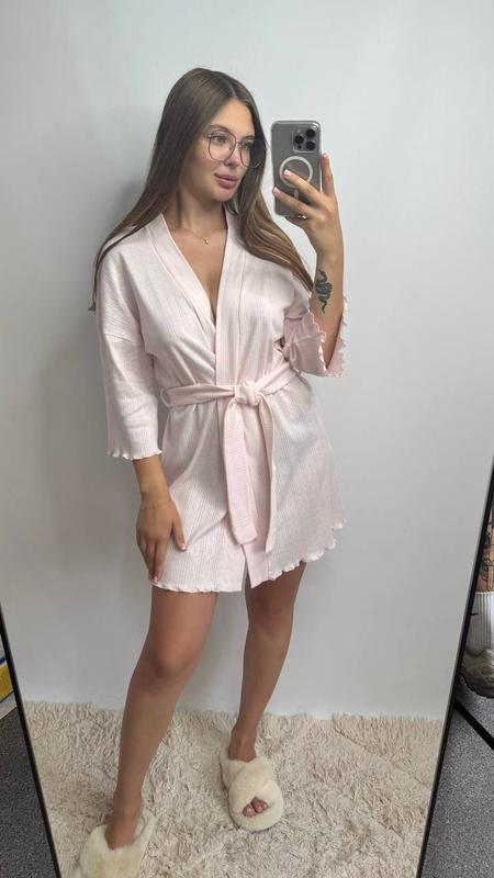 Классический халат для дома🥰 Из ткани трикотаж БАМБУК Легкий халатик на запах для дома, который фиксируется поясом на талии. Вкладка: трикотаж БАМБУК Код :232/24 Размер: xs-s, m-l, xl-xl Цвет: розовый На модели размер xs/s