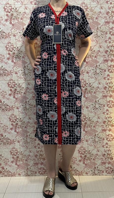 Трикотажний жіночий халат на молнії. Халат має два кармани . Склад 100% хлопок Виробник: Узбекистан. Якість супер , мягенький та приємний до тіла !!! Спереду по боках має два кармани та пояс на талії. *********** ЗАМІРИ: 52 розмір пог - 52 см,поб- 56 см, довжина 105 см ********* Повернення та обміну товару немає Наложки немає Доставка Укрпоштою та Новою поштою Можлива похибка в замірах 1-1,5см