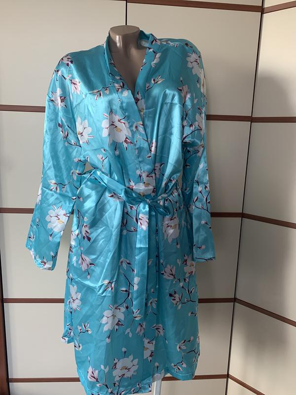 Дуже красивий,ніжний халат,розмір М-L(вказаний М)довжина 100см,пог 56см,пот 59см,новий,без паперової бірки.