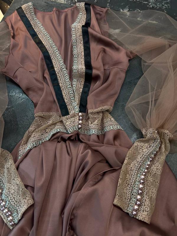 Изысканный длинный халат, воплощающий роскошь и чувственность. Его мягкая, шелковистая ткань Армани окутывает тело легким прикосновением, создавая эффект утонченной элегантности. Деликатное кружево добавляет романтичности, а прозрачные воздушные рукава из еврофатина придают образу загадочность и нежность. Жемчужные акценты, изящное сочетание фактур и ручная работа делают этот халат настоящим произведением искусства. Идеальный выбор для тех, кто ценит уникальность, женственность и благородный стиль. Пояс в комплекте, стоимость 3300 грн 🫶