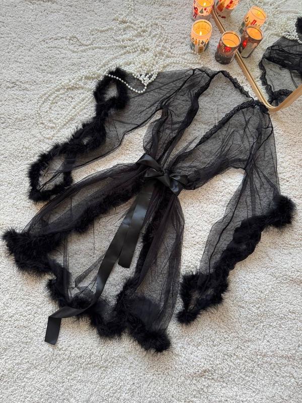 Арт. D131/1 Прозрачный халатик с пушком - идеально подходит для шикарного свидания дома😘 пробуждает страсть🔥 Комплектация: халат, пояс. Размеры: S, M ⬇️ Размерная сетка ⬇️ S: грудь 85-96, бедра 85-98 см М: грудь 95-102, бедра 95-105 см 🏷Цена: 745 грн