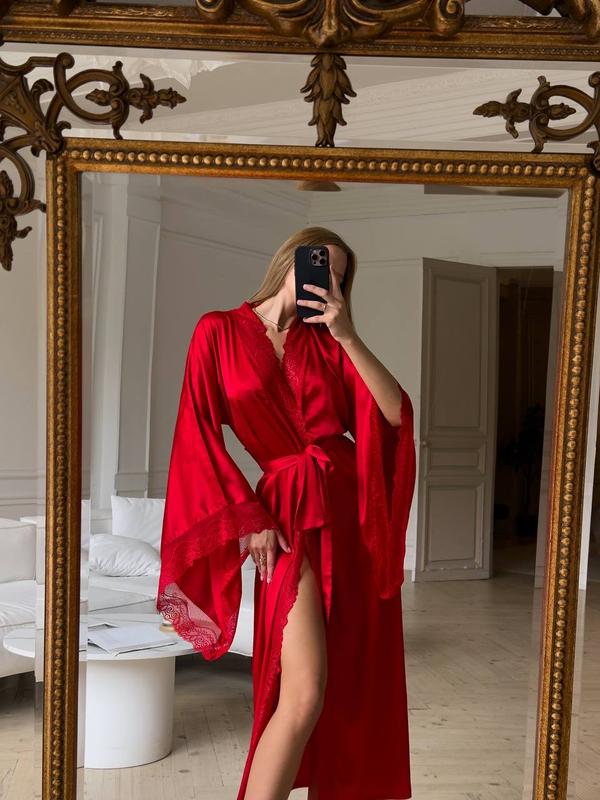Червоний довгий халат з довгим рукавом