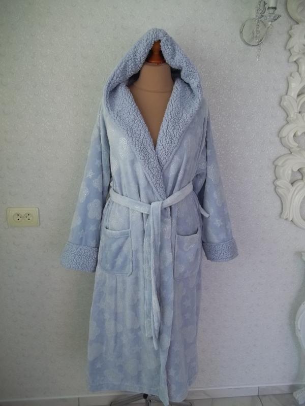 Б / У , в новом состоянии Женский халат флисовый Размер : 54 р Длина - 120 см Ширина плеча - 56 см Длина рукава от плеча - 55 см Грудь - 140 см Талия - 140 см Бедра - 150 см