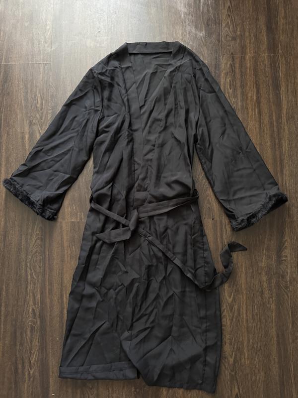 Халат прозорий, поліестер, має пояс Пушок на рукавах Довжина 115 см, ширина полная 108 см , довжина рукава від плеча 50 см , від плеча до плеча 44 см , доина ремінця 155 см
