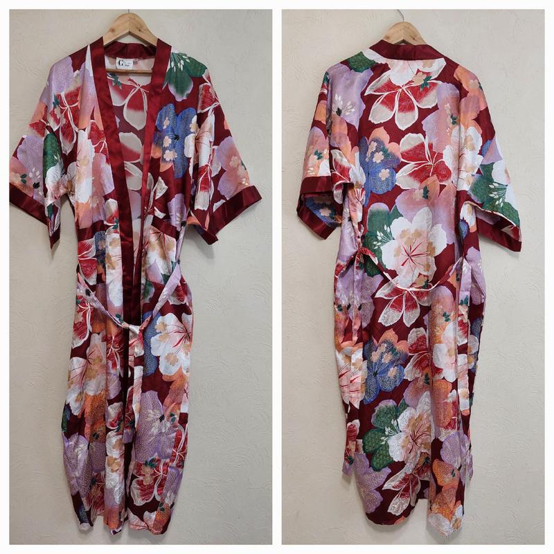 Домашний атласный, сатиновый халат-кимано в цветочный принт с карманами gfull gold spain(l...