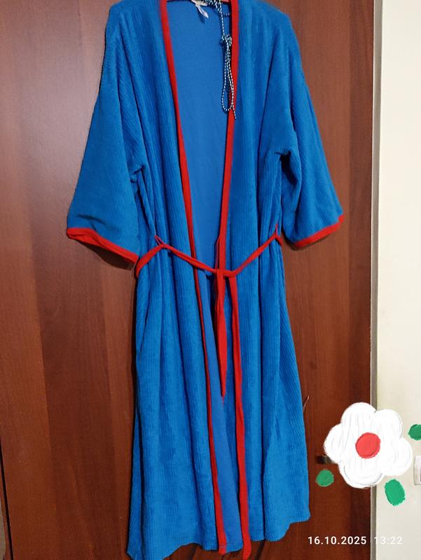 Теплый халат с коротким рукавом размер Л -ХЛ замеры на фото