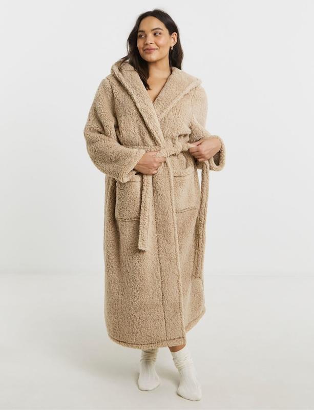 Невероятно уютный домашний халат с капюшоном, созданный для комфорта и тепла в прохладные дни 💫 Модель Simply Be Natural Pretty Secrets Teddy Midi Gown — это сочетание нежности, стиля и практичности. 🌿 Цвет: натуральный бежевый — теплый, спокойный и универсальный. 🧥 Материал: мягкий плюшевый "тедди" — очень приятный к телу, создает эффект объятий. 👗 Длина: до щиколоток - красиво смотрится и хорошо согревает 🎀 Детали: Пояс из того же материала подчеркивает талию. Два больших накладных кармана спереди — удобно для мелочей или просто для теплых рук. Удобный капюшон добавляет еще больше уюта. 📏 Размер: L ✨ Состояние: новый / идеальный Этот халат – как теплые объятия после долгого дня. Идеален для вечернего отдыха, утреннего кофе или ленивых выходных дома ☕💤