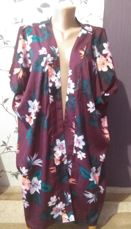 Красивейший халат-накидка, с разрезами по бокам, прямого покроя. Размер универсальный, указан M, подойдёт от 10 до 16. ОГ 86, по низу 89.
