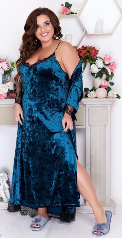 предоплата 100 % Комплект халат и ночнушка Мод 27 Ткань:велюр мраморный. Размер:50;52;54 Цвет:сирень,серый,шоколад,бирюза,алый,изумруд. Цена:550 грн Токарева