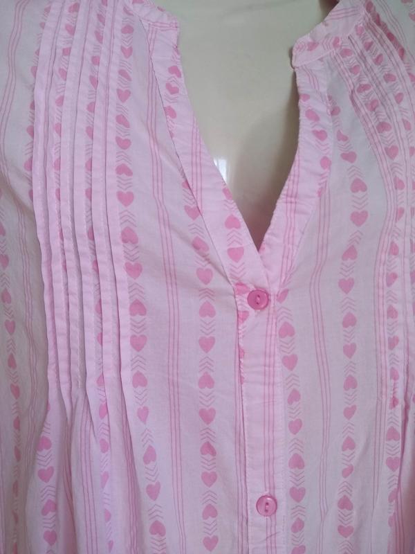 Розовый халат ночнушка в сердечки с длинным рукавом на пуговицах sleep lounge/хлопок/батал