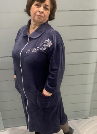 Кольори різні. Вишукана вишивка доповнює халат, а розміру йдуть від 48 до 64. Наявність розмірів у кожному кольорі уточнюємо при замовленні.