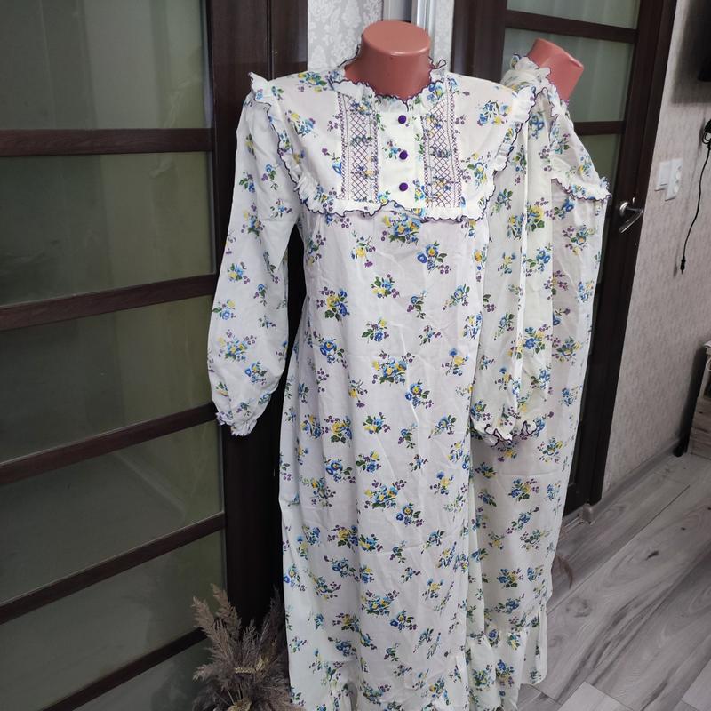 Пропоную вашій увазі нічну сорочку Розмір: 44/46 Стан: ідеальний Дефекти: не має Колір: молочний Принт: квіти Сезон: літо/весна/осінь Склад: 65% поліестер, 35% котон Заміри: ПОГ 56 см довжина 134 см