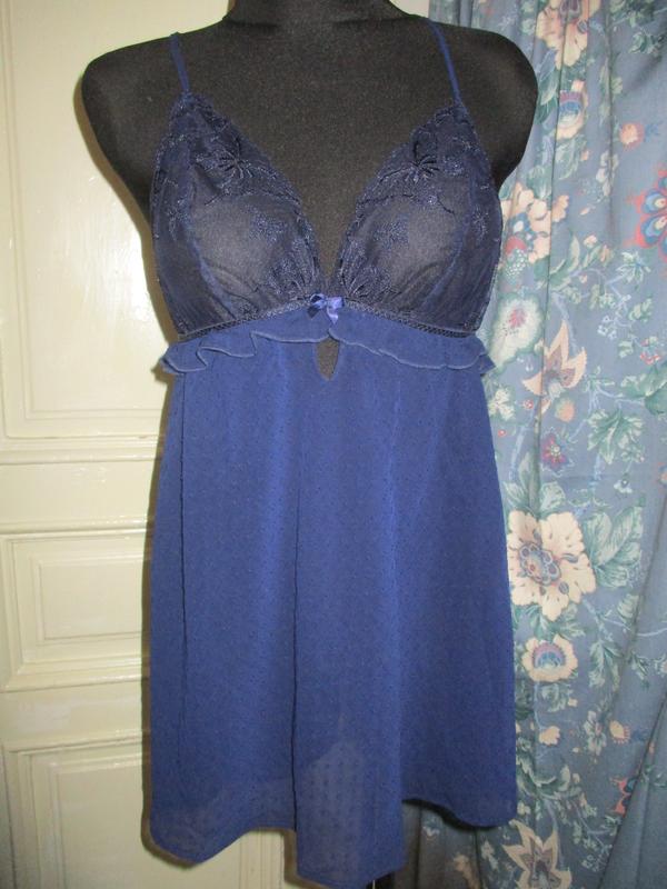 ночная рубашка.темно-синего цвета.полиэстер.в комплекте со стрингами.ПОГ 38.длина 75. стринги ПОТ 35.высота 23см