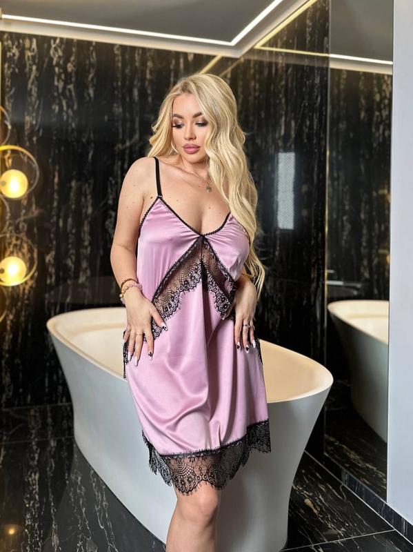 Ночная рубашка на бретелях шелк с кружевом 42-60 р-р