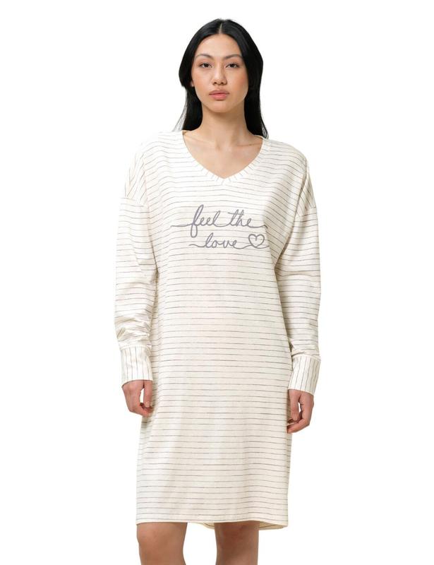 Ночная рубашка Triumph NDK LSL 10 CO/MD Ночная рубашка с длинным рукавом Ощущение комфорта обеспечивает крепкий сон. И от этого тебе становится легче. Поэтому для изготовления этой ночной рубашки мы тщательно отнимали самый качественный, приятный к коже материал. Удобная свободная ночная рубашка с V-образным вырезом Легкие манжеты на рукавах Принтований мотив спереду Качественная натуральная ткань Изготовлено в соответствии со стандартом Öko-Tex® 100 Материал: 50% органический хлопок, 50% модал