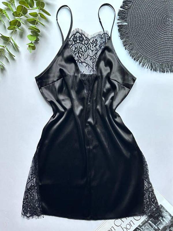 Рубашка из атласа с кружевом, ночная рубашка атлас, атласный пеньюар