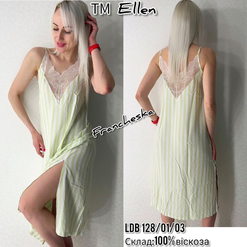 Женская ночная рубашка в стиле Victoria's Secret от украинского производителя ELLEN из коллекции "LIME CREAM" (LPB 4772/10/01)/ Женская ловящая ночная рубашка ELLEN выполнена из качественного 100% вискозного полотна, длиной ниже колен. Модель полуприлегающего силуэта, на тонких регулируемых бретелях и с V-образным декольте, украшенным вставкой из кружева. Спинка эффектно обработана глубоким вырезом и кружевом. Женская ночная сорочка очень красивая и комфортная, можно использовать как одежда для дома, а также как подарок любимому или близкому человеку. Размер: S. M. L. XL. XXL (размеры полномерные) Цвет: как на фото Состав: 100% вискоза При необходимости можем сделать измерения и помочь правильно подобрать размер Мы всегда готовы посоветовать и предложить вам именно тот товар, который нужен Вам. Одежда для дома от ТМ Ellen производится в Украине с использованием европейских хлопковых тканей. Комплекты порадуют красивым современным дизайном, приятной цветовой гаммой и добротным пошивом. Женская домашняя одежда Ellen станет изюминкой домашнего гардероба.