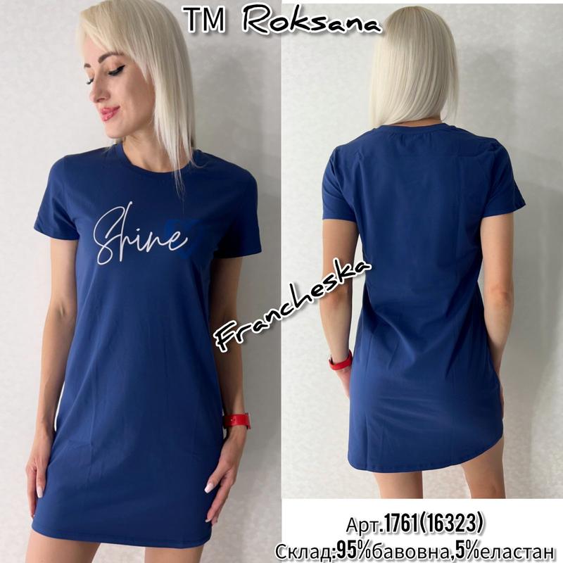 Темно-синя домашня сукня (арт.1761), которая легко может служить как ночная рубашка от украинского производителя ТМ Roksana - это удачное сочетание комфорта и стиля. Модель выполнена в классическом прямом крое с коротким рукавом, что делает ее удобной и практичной для ежедневной носки дома или во время сна. Насыщенный темно-синий цвет добавляет элегантности, а стильная надпись "Shine" спереди подчеркивает современный характер изделия. Ткань приятная к телу благодаря составу: 95% хлопок и 5% эластан, что обеспечивает мягкость, дышащие свойства и легкую эластичность. Эта модель станет вашим любимым вариантом как для уютных ночей так и для комфортного домашнего отдыха. Склад: 95% бавовна, 5% еластан Размер: S. M. L. XL. 2XL. 3XL (размеры полномерные) Цвет: темно-синий (как на фото) При необходимости можем сделать измерения и помочь правильно подобрать размер
