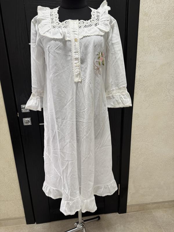 Нічна сорочка з вишивкою та мереживом