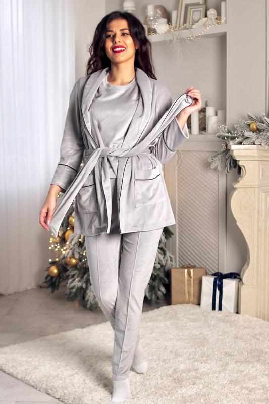 Піжамка « Шаль»❤️ Колір - срібло) Розміри - хс, с, м, л Тканина - велюр на бавовняній основі 😍 Ціна - 1350 грн До комплекту можна окремо замовити футболочку. Її ціна 400 грн 🙌 Кольори: графіт, морська хвиля, пудра, чорний, оливка, срібло