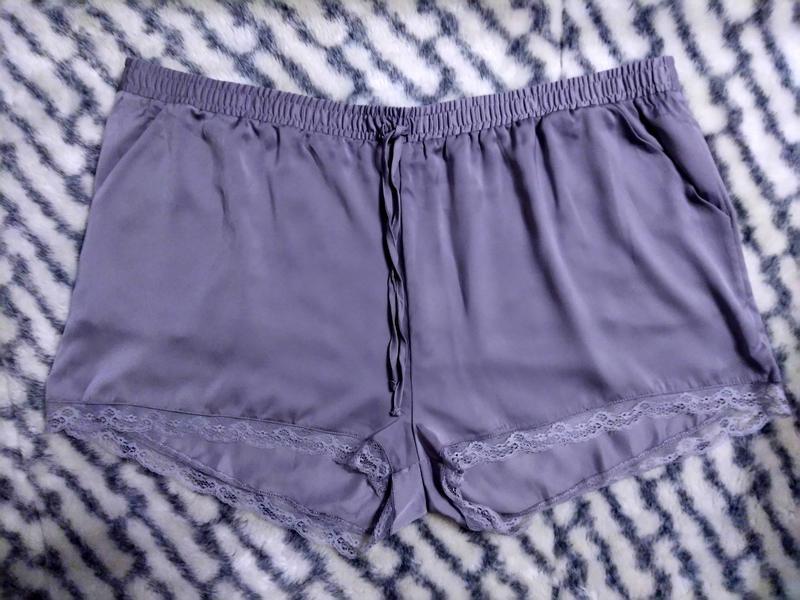 Шортики для сну Secret Possessions. Розмір - 2XL UK 22/24 EUR 50/52. Заміри: - ширина в поясі в спокійному стані 56 см, тягнеться до 71 см, - напівобхват стегон 73 см, - висота посадки 40 см. Склад: 100% поліестер.
