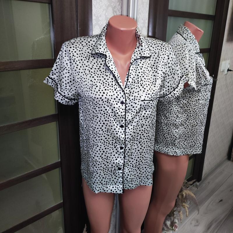 Предлагаю вашему вниманию атласную рубашку для спания/пижамную рубашку/рубашку для дома🩳 Розмір: на бірці S Состояние: очень хороший ✅ Дефекти: ❗одна затяжка❗ Цвет: белый Принт: капочка черная Сезон: лето/весна Состав:100% полиэстер Замеры: НОГ 48 см Длина 59 см