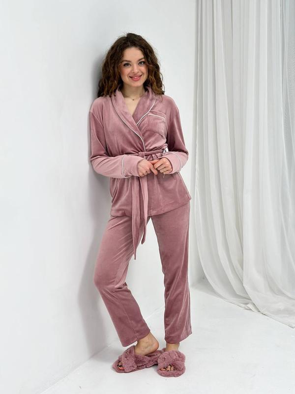 Домашняя одежда пижама велюр шаль кант кофта и штаны 6 цветов