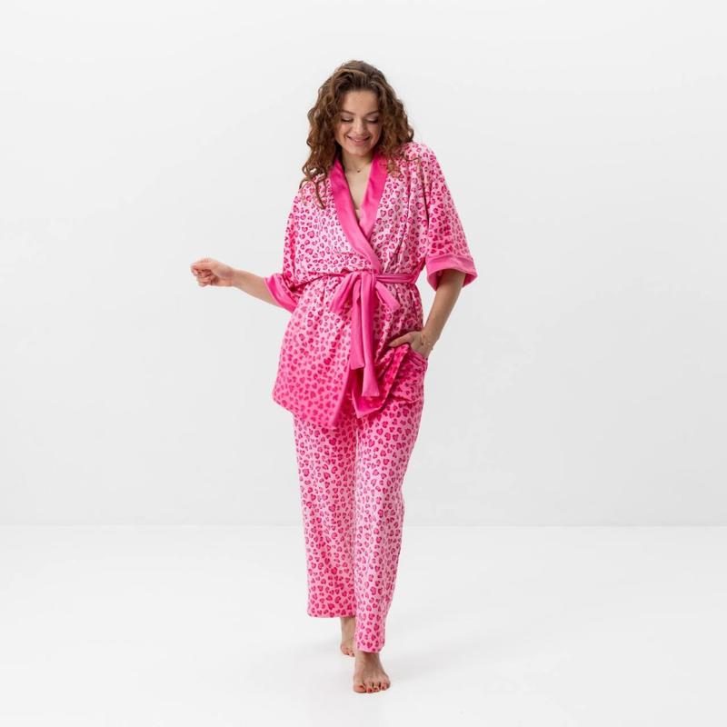 Комплект женский из плюшевого велюра штаны и халат розовый леопард 3420_l 15965 l