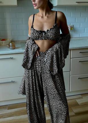 Производство м. Харьков Есть после платья и обмен Домашний костюм «Afina» (халат+топ + штаны) трикотаж двунитка Леопард ▫️Размеры: S, M, L ▫️Артикул: 20827