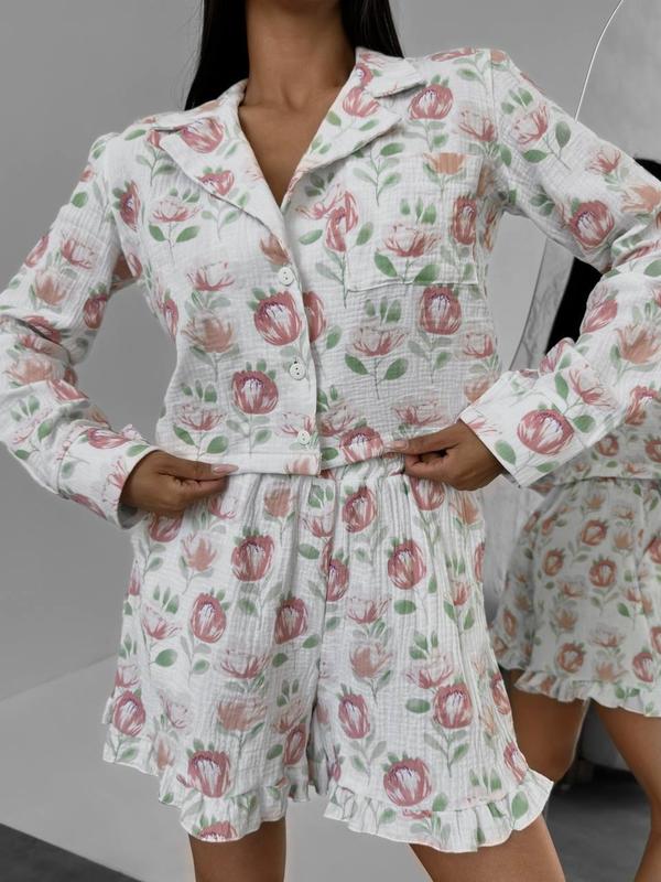 Комплект пижамка муслин ▫️цвета - принт фламинго, принт мелкие цветы, принт крупные цветы