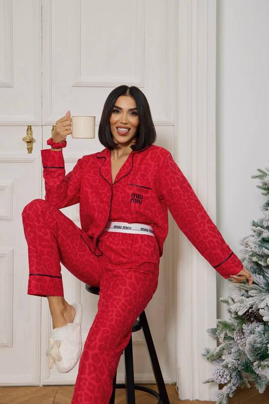 ⭐️ хлопково/сатиновые пижамы miu miu рубашка и брюки в 5 цветах ⭐️
