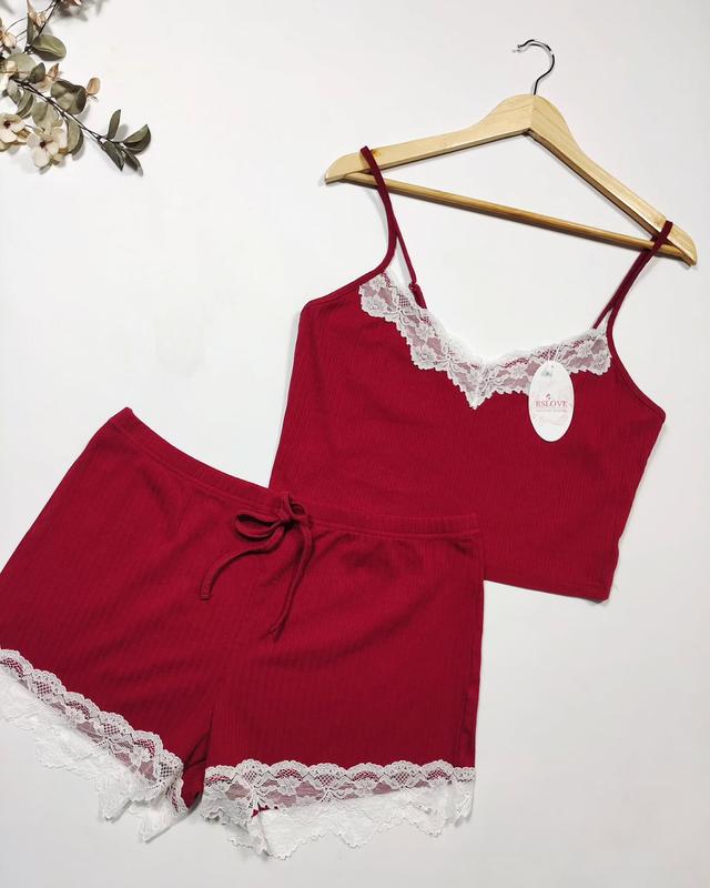 500 грн Вишневая пижама Размер L-XL Шорты Длина 33 Пояс резинка 41 ПОБ 53 Топ Длина 48 ПОГ 47-53 Нова >>>>>>>>>>>>>>>>>>>>>> код 309