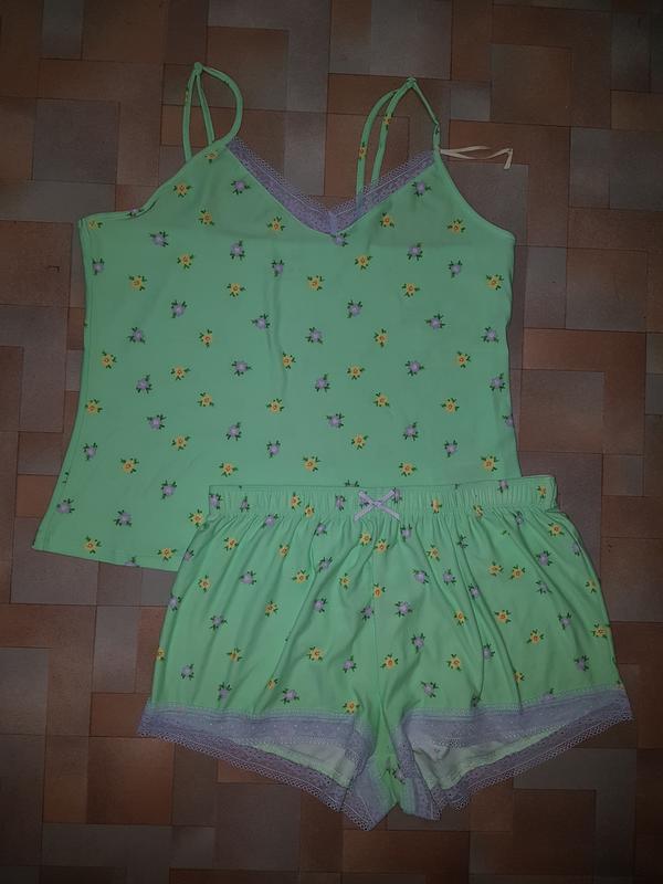 Абсолютно новая, но без бирки! Читайте внимательно описание! Верх-S, низ- XS! Всеми любимая микрофибра Цвет салатовый Декор кружево Очень мягкий и приятный комплект, материал хорошо тянется Состав: 92% полиэстер, 8% эластан Майка: Размер: S UK/IRL 10-12, EUR 38-40 длина от верха бретели-54 см (еще регулируется) пог- 45 см Шорты: Размер: XS UK/IRL 6-8, EUR 34-36 длина- 26 см резинка- 35,5 см Дополнительные фото и замеры по запросу. Пишите, отвечу на любые вопросы! БЕЗ ТОРГА!! ВОЗВРАТА НЕТ! Возможна доставка Укрпочтой и Новой почтой в другие регионы за счет покупателя.