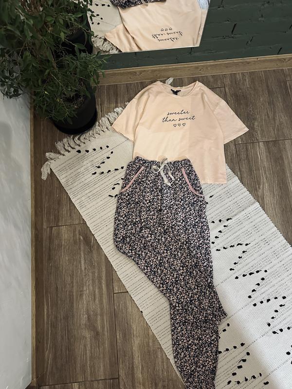 коттоновая пижамка костюм для дома🌿 размер S/M цена 280 грн пот 35+резинка поб 53 длина 90 пог 53 длина 50