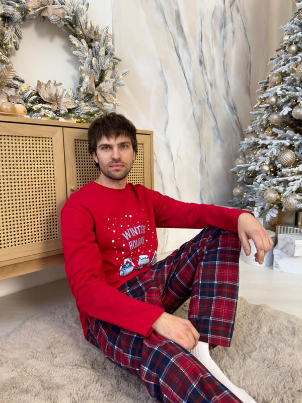 Создайте уют зимних праздников вместе с мужской пижамой "Winter Holiday"! Эта пижама состоит из мягкого красного лонгслива с начесом и брюк в классическую красно-синюю клетку. На лонгсливе изображены милые заснеженные домики, которые добавляют образу праздничное настроение. Теплый начес согреет вас даже в самые холодные ночи, а брюки удобной посадкой и вместительными карманами делают пижаму не только стильной, но и практичной. Идеально подойдет как для семейного отдыха дома, так и для подарка. К этой модели есть женская пара – создайте слаженный образ со своим партнером и наслаждайтесь зимним уютом вместе! Модель: KMW20 Размер: M; L; XL; 2XL Цвет: красно-синий ______________________ На модели размер М, параметры модели: 94/90/100 Плечи 50 Рукав 60 Рост 183