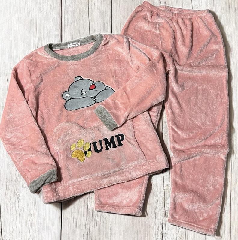 Неймовірно м’яка та тепла піжама — ідеальний варіант для сну та домашнього затишку. Приємна на дотик тканина добре зберігає тепло ✨ Деталі: • Комплект: кофта + штанці • Матеріал: м’який • Колір: ніжно-рожевий із сірими манжетами • Декор: милий ведмедик та вишивка JUMP 🐾 • Кофта з довгим рукавом, зручний крій • Штанці на м’якій резинці, не тиснуть 👶 Підійде для сну, дому або як теплий домашній костюм у холодну пору.