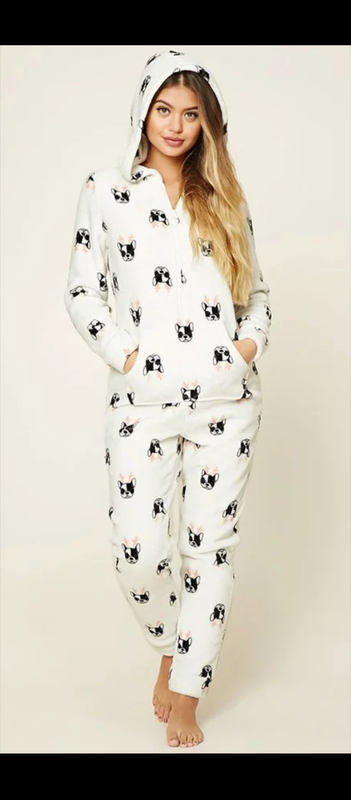 Женская пижама зимняя с собачками Forever 21 + маска для сна Классный пижамный комбинезон Forever 21+ с принтом собачки на тему праздников. Очень мягкий, теплый и качественный. На молнии. С капюшоном. Спереди карман. Манжеты на рукавах и штанинах. Размер XS (32-34),на наш 40-42 Объем - 100см Длина без капюшона - 150см Длина рукава - 62см Прикольная маска для сна в подарок!!!