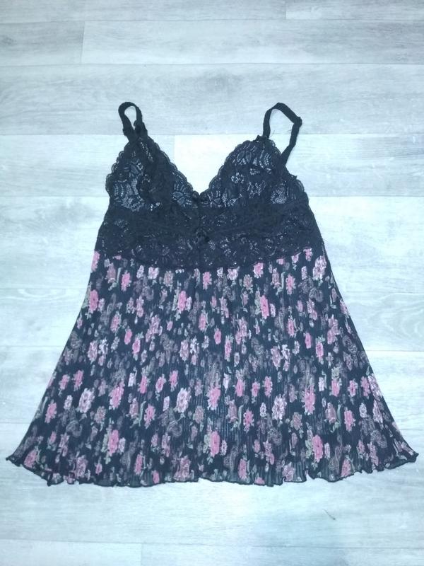Майка женская для сна чёрная с цветами. Замеры: пог 31 см, длина по спине 36 см, шлейки регулируются.