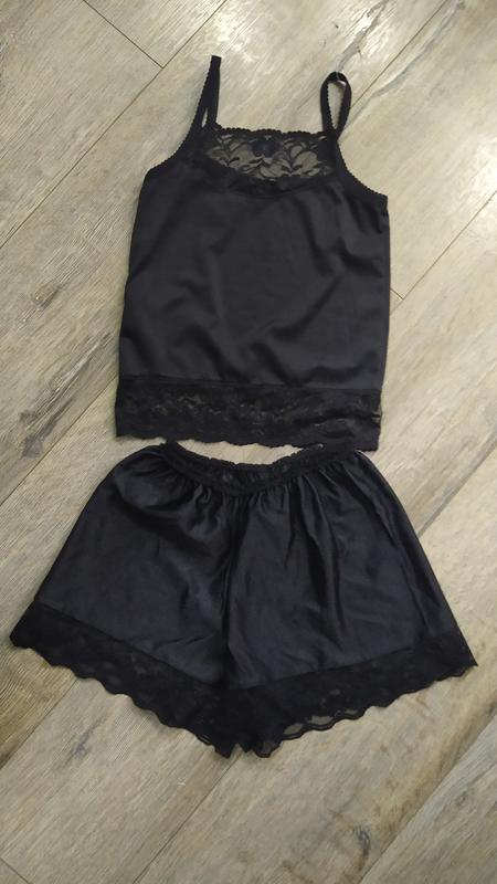 Xs/s-36/38,германия!черный комплект в винтажном стиле майка+шортики для сна