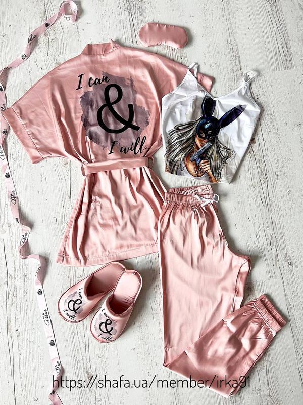 I can & I do… Наш новенький шовковий комплектик у персиковому кольорі додасть тобі впевненості вдома 👌🏻 Розміри піжами Xs, S, M, L Розмір халатика універсальний Xs-Xl Розміри тапок 36-37, 38-39 (35, 40, 41 під замовлення) 💸Ціна комплекту (халат, маєчка, штанці) 1450 грн При купівлі комплекту маска для сну в подарунок 💝 💸Ціна тапок 290 грн Всі комплекти ідуть в подарунковому пакуванні та з солодким бонусом🎁 Усі розміри відпринтовані і відшиваються після оплати або передплати. Термін виконання замовлення 1-3 дні. Є оплата на карту, накладений платіж по передплаті 220 грн або Безпечна оплата на Шафа. Юа