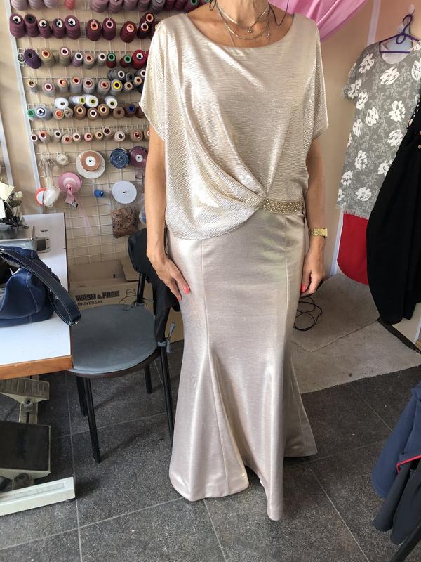 Святкове плаття. Один раз одягала на весілля. Майже нове. Довге. Розмір 48-54. Дуже зручне і красиво виглядає. Ошатне. Довжина 145 див. З каблуком виглядає шикарно. Матеріал щільний, важкий