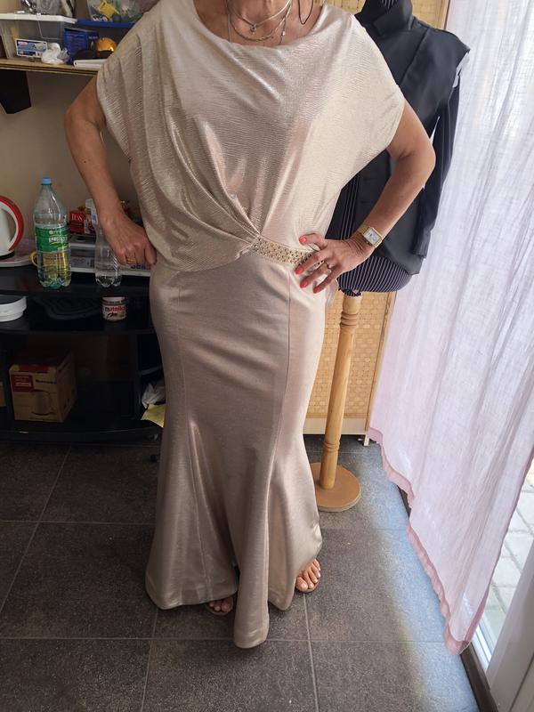 Праздничное платье. Очень красивое. Одевала один раз на свадьбу. Почти новое. Форма Рыбка. Материал полиэстер, трикотаж с напылением золото. Размер 50-52. Цвет на фото не передаётся. В реальности красивее. Материал плотный, тяжёлый. Возможен небольшой торг